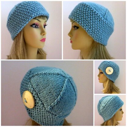 The hatband is knit in the moss stitch. It is two layers making it warm and snugly. The simplicity of the crown compliments the texture of the band.