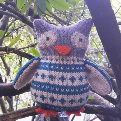 Ola Owl is a happy, wise and squishy toy with a fair-isle tummy and intarsia eye patches.