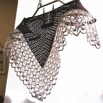 This vintage-style lace shawlette was created for two shades of Knitpicks Gloss Fingering (50g, 220yds, 1 skein in each colour), but would work equally well in any one skein of fingering weight yarn with a similar yardage, or a combination of variegated and tonal yarns. It is crocheted from neckline to tip with increases down the center and on each edge. Crochet one in every color you need in your wardrobe, and accessorize.