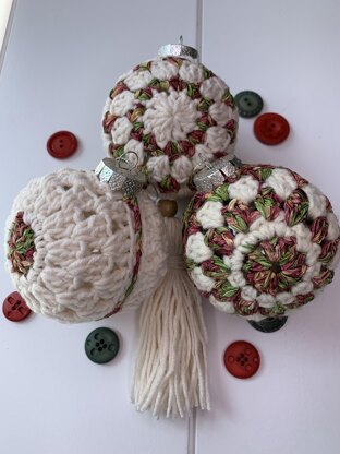 These beautiful Old World Christmas Baubles are created using size 4 med. weight yarn and5.50 "Italian" ribbon which make these ornaments special. There are so many different color options to choose from when deciding on which color combo to create!
