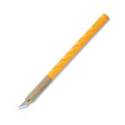 This standard-duty art knife is the perfect complement to your delicate work with it's acutely pointed blade for precision. The OLFA pen-like knife features a contoured handle and textured grip for comfort and stability. Quick-spin easy blade change. Satisfaction Guaranteed.