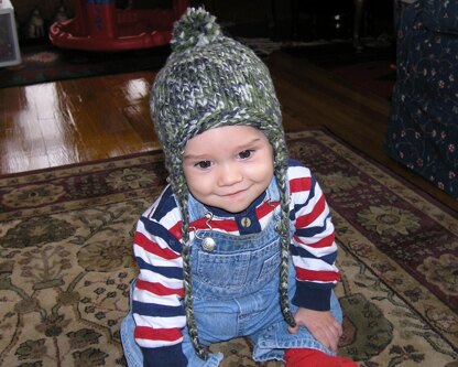 A quick and easy earflap hat pattern for babies and toddlers that can be easily changed to suite your own taste. Knit with edge and earflaps in garter stitch or seed stitch, change the i-cord ties to braided ties, omit the pom-pom, or add a crochet edge.
