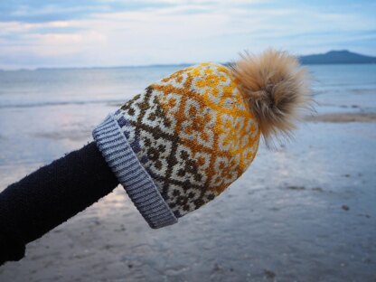 Construction: Ombeline has a unique top-down construction, which allows for some improvisation, and you can get the fiddly increases done first before moving to the main body of the hat! You could easily adapt this pattern to be worked bottom-up as it is mainly charts which can be turned around. Pattern follows a colorwork chart for the crown increases and body, then working a 1x1 rib stitch for the brim, which can be worn folded up or slouchy.