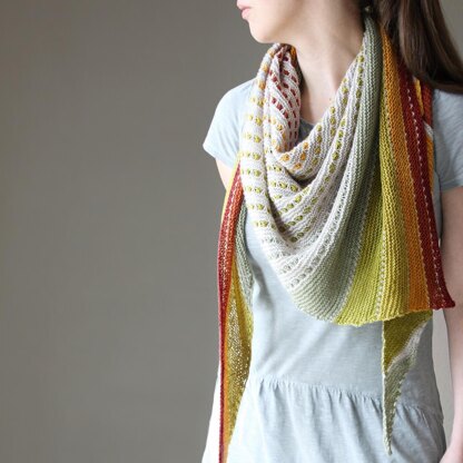 You’ll find one in On the Spice Market, an asymmetrical triangle shawl featuring a zesty mixture of textures, slipped stitches, and short rows.