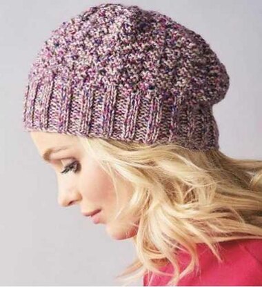Quick and easy hat made from just one 100g skein. The design uses simple knit and purl stitches for a fab textured finish. This design would work in a solid shade as well as in the yarn used here, which is West Yorkshire Spinners The Croft Shetland Tweed Aran.