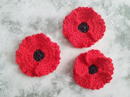 Looking for a quick and easy pattern to make poppy flowers? Look no more! This pattern works up fast and it's crocheted in one piece without any sewing needed, perfect if you have to make lots of poppies in a short time. This applique pattern is a wonderful option to decorate your items. With its vibrant colours, it will brighten any piece of clothing, bag, blanket etc. This pattern comes in 3 options to suit all tastes: with 3, 4 or 5 petals.