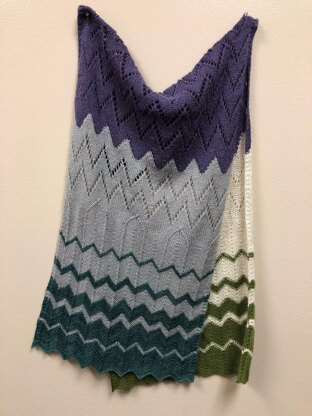 The Onwards Shawl is a generously sized lightweight shawl to wrap up in on cool days. The cable, zigzag, and lace stitch patterns complement each other and provide an effect of movement in the piece.