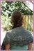 Size/Finished measurements - Small (Large). 42 (43)" wide measured along top edge; 12.5 (16)" deep at center, measured after blocking. Small version shown with turquoise shirt; large version shown with dark purple shirt.