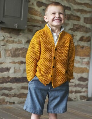 Not your basic kid sweater, open stars kid combines a lace-like bodice with shawl collar for a refined and dapper look. One of the more difficult pattern stitches in the collection, open star stitch produces a rugged, yet lacy look similar to crochet with lots of stretch.