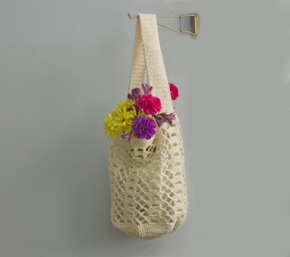 The bags is perfect for a day at the Farmer's Market or just a trip to the grocery store. Though compact, it will naturally stretch to fit lots of groceries or vegies. A strong, pretty bag, it can also be used as a tote, book bag or beach bag.