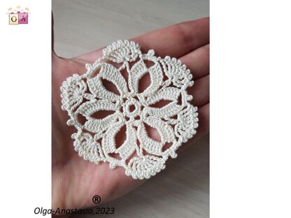 Openwork antique flower. Modern crochet Irish lace pattern . A detailed pattern for all crochet motifs - a graphic diagram, a photo and a verbal description of each crochet row. PDF file for 9 pages Design work by Starostina Olga.