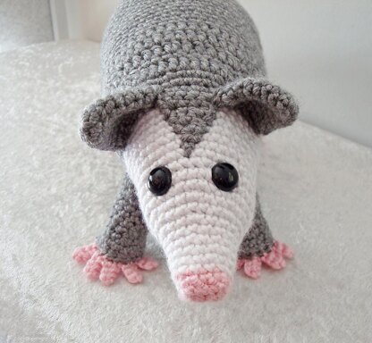 Item size will depend on the weight of yarn used. The sample was crocheted using worsted weight acrylic yarn and size F crochet hook. Adult oppossum sample size is 5" tall, 4 1/2" wide and 17" long from tip of nose to end of tail. Baby Opossum sample size is 1 1/2" high, 7 1/2" long including the tail, and 3 3/4" wide between the two front legs.
