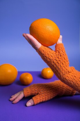 Crochet fingerless mittens pattern “ORANGE CRUSH” design includes: