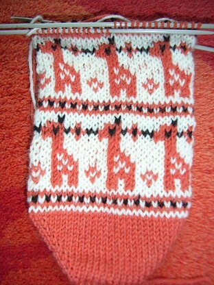 Perhaps you can give me a feedback which one of the charts you like more. Thanks! Couldn't wait to start the socks... Put up my first photo of the first two giraffe repeats. It looks so cute! I love it.