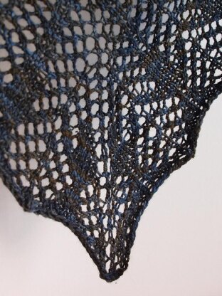 Designed to resemble a canopy of pine branches complete with a border of hanging cones, Oren is a triangular shawl knitted from the centre of the neck down.