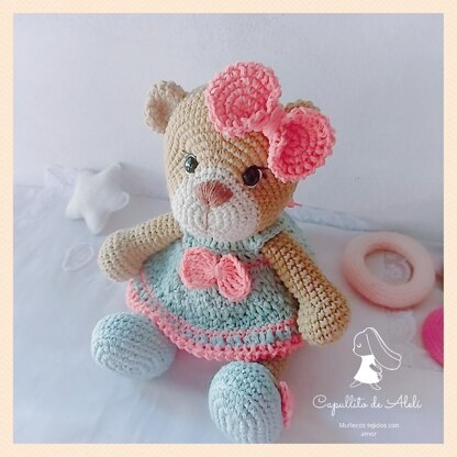 La osita Cielo mide 30 cm. Tejido con hilo semigrueso.
