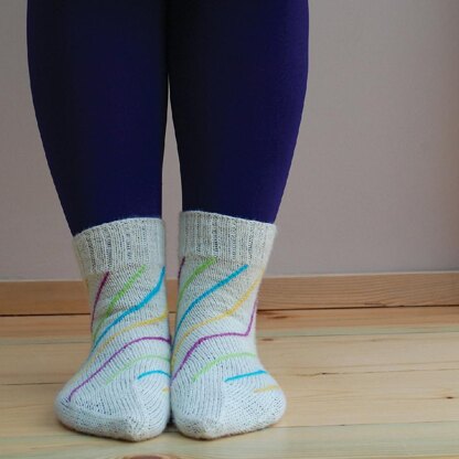 Swirls of colour dance and play around Ossa; the perfect blank canvas for using up sock scraps and celebrating colour. This sock is knitted from the top down and features an afterthought heel. The heel and toe are shaped using swirl decreases, which often look a little unusual but fit beautifully.
