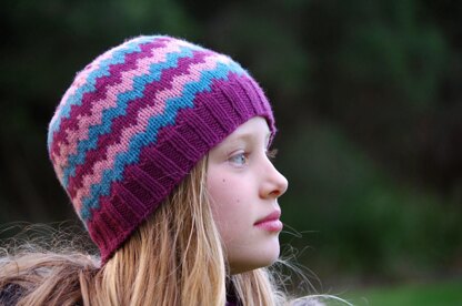 Otways is a simple colourwork beanie knit from the brim upwards. The three colours form a neat little chevron pattern that is perfect for those new to colourwork. Two colours are worked at a time for two of every four rounds, and colours are never carried more than three stitches.