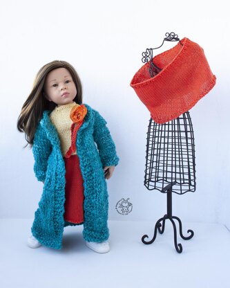 Outfit Orange and Turquoise for 18in doll knitting flat