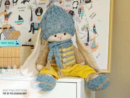 1 Knitting Pattern for an overalls; 2 Knitting Pattern for boots; 3 Knitting Pattern for a hat; 4 Knitting Pattern for a scarf; 5 Knitting Pattern for a jacket;
