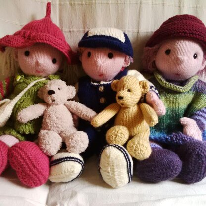 Baseball Kit (jacket, sweatpants and cap) Play suit (frilly top, shorts and sunhat) Poncho Cloche Hat Nightshirt (unisex) Slippers Purse Christmas stocking Teddy Bear