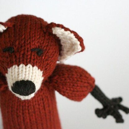 This Intermediate pattern requires knitting in the round, i-cord, bar increases, grafting and a little bit of embroidery for his face. You'll need about 90 yards of worsted weight yarn in the main color and around 10 more yards in two additional colors per animal. When knit to gauge, Foxes measure around 10 inches from head to toe.