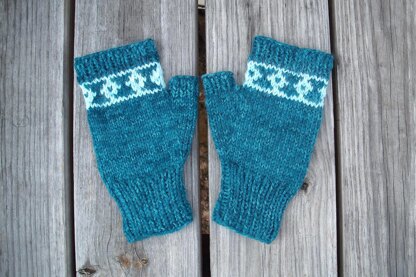 These warm, fitted fingerless gloves are knit in-the-round and have a well constructed thumb gusset. This pattern includes a stranded color-work chart.