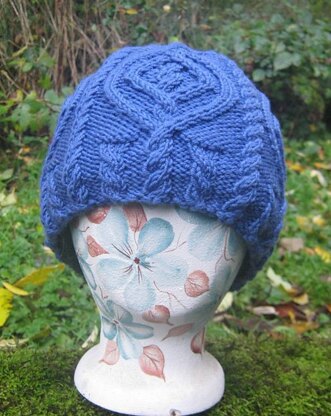 Cables twist and untwist forming Counter-Twisted Ovals on this cute cap. The decreases cause the pattern to create a surprising star shape on the top, finished off with an I-cord "button".