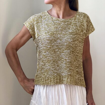 Somewhere between a tee and a tank, this top makes a great warm weather staple or a lovely layering piece for cooler weather. Suggested ease is 1½ - 4 inches (3.5 - 10 cm).