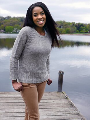 An easy-fit seamless raglan pullover in ten sizes (XS to L and 1X to 6X) to knit in the round from the bottom up. Deep hems in shifting rib pattern add shimmery, textured interest that is echoed in the raglan detail. This lightweight layer will be a go-to “sweatshirt” favorite for transitional weather at the beach or on the trail. Pattern includes both crew neck and v-neck options as well as short and long sleeved versions.