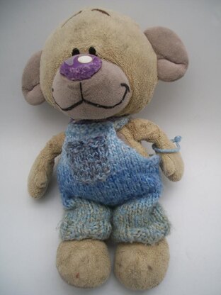 This is a pair of overalls that are designed to fit a bear with the following measurements: 9.5 inches tall 8.5 inches around the tummy 1.75 inch long legs 1 inch long tail
