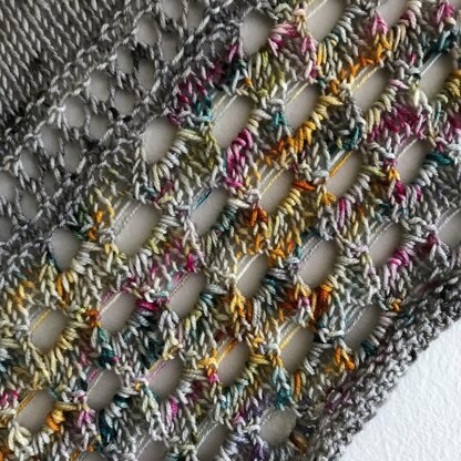Designed to highlight the beautiful hand-dyed yarns that knitters can’t seem to resist, Overbrook Shawl combines simple lace stripes with a striking border that mimics a crochet granny square stitch. The shawl is adjustable if you prefer a wider and deeper triangle to cozy up with during cold weather.