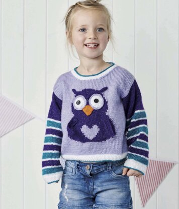 The Owl Be Good sweater is a bottom up sweater, with a very simple intarisa panel on the front. A couple of eyes, a beak and some wings add the cute factor.