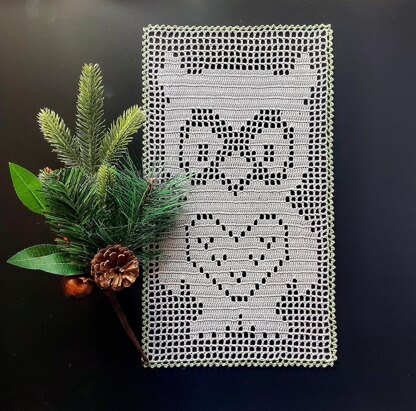 Table Runner is made in 2 steps: first the Owl in filet crochet technique following the chart, then adding the edge round using a contrast color thread.