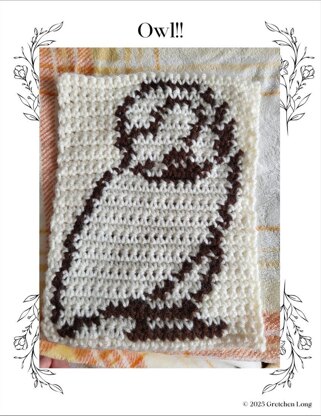 This is the downloadable PDF PATTERN for the @a2gcrochet Mystery Tapestry Crochet-A-Long from February of 2025. This months mystery tapestry was an OWL! You can access the pattern for free on my instagram account (the rows were released 2 at a time), or you can purchase the printable PDF here! This tapestry uses 2 colors and is 24 stitches by 32 rows.