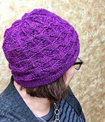 **Oy with the Poodles!** has a simple yet stunning lace design that flows well with garter and flies off the needles. With both charts and written instructions, knitters can choose the most comfortable way to follow the pattern. There are also two crowns written so you can customize how long your hat is very easily.