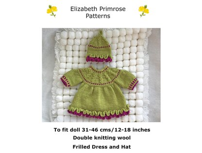 Frilled Dress and Hat to fit a doll 31-46 cms or 12-18 inches