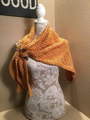 This triangular scarf is knit on a 3/4" gauge Knifty Knitter 41-peg yellow round loom, using any medium weight yarn.