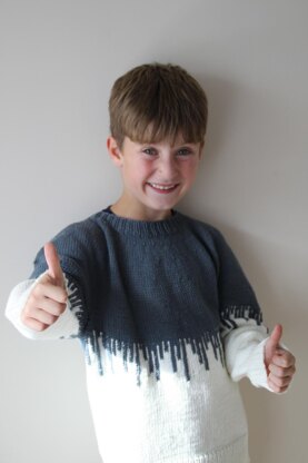 Paint Drips Sweater is a loosely fitted sweater designed to fit for a long time. The top looks like your child has spilt a can of paint over him or herself. It’s top down and it is seamless. Perfect for those new to stranded knitting or knitting with chart. The drips can also be embroider on as duplicate st after the garment is finished. Both options are included in the pattern.