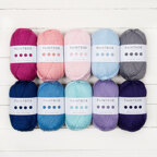 Ballet Pink (852), Blush Pink (853), Raspberry Pink (843), Dolphin Blue (836), Seafoam Blue (831), Slate Grey (805), Duck Egg Blue (835), Dusty Lilac (846), Dark Aubergine (848), Midnight Blue (837)