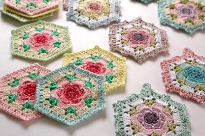 Using the pretty hexagon flower motif from the Painted Anemones Blanket pattern as a starting point, these two smaller projects show off the design beautifully and provide the perfect decorative touches around the home for you, or to give as a gift.