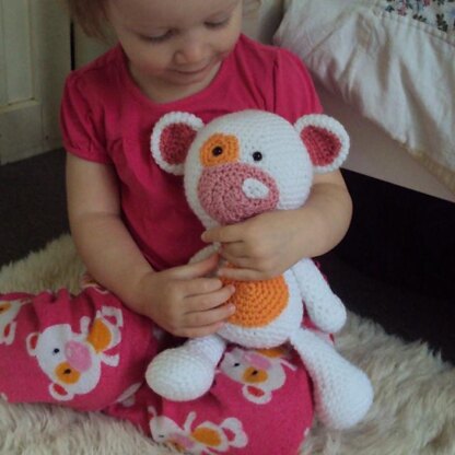 This adorable little teddy was designed based on the bear on my daughter's favorite pair of pajamas. He'll make a great new friend for your little one too!