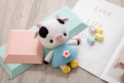 Size: The finished cow stands approx 18cm, 7.1 inches tall.( The thinner the yarn you use, the smaller the doll will be)