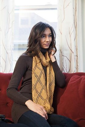 Knit in a diamond lace pattern bordered with a simple seed stitch, the Palazzo Scarf adds impact and elegance, alike. Knit it in a yarn with lots of silk for a gorgeous shine, or choose a wool for a warmer option. Any which way you make it, the Palazzo Scarf is sure to please.