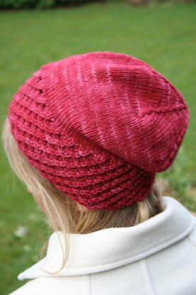 "Pamir Hat" has been created to go with "Pamir Cowl" The textured pattern used on both creates a lovely stretchy brim on a hat, a nice change from ever so popular rib variations. The size given fits 18" - 23" head circumference and still there are detailed directions on how to adjust it to individual needs.