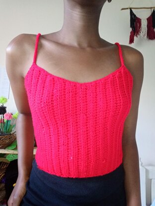 This pattern is a measurement based pattern and the instructions provided are to help in overall construction of the top. The pattern is in size XS (S, M, L, XL) The primary colour used is red but one can use any colour of their choosing. Other colour suggestions are white, pink, maroon and blue.