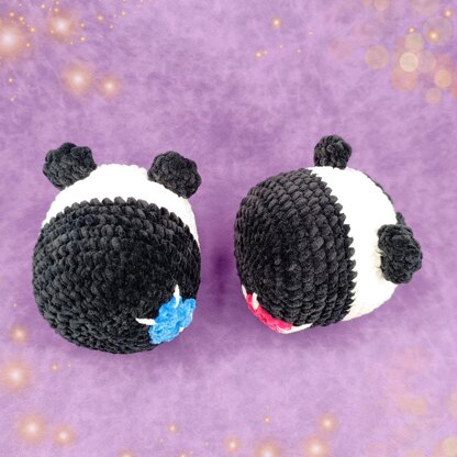 The finished toy using a 5 mm crochet hook is approximately 5.906 inches/15 cm. 💜🐼