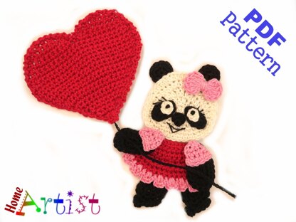 The pattern provides instructions to make a cute crochet applique that can be used in inumerable ways...decorate and personalize your favorite objects like hats, t-shirts, bags, school knap-sacks and lots of other stuff you can think of. Panda: 5 inches across by 6 inches tall Heart: 5 inches using 2.5 mm crochet hook but the size can be varied by using thinner or thicker yarn and types of hook. Colors can be changed according to your personal preference. The pattern is designed for worsted weight yarn and uses American English crochet terms.