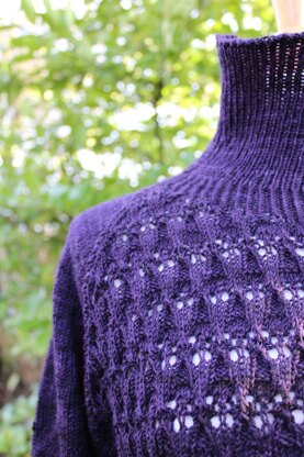 The pattern includes directions for knitting a pullover with chest width of 96 (102, 109, 116, 122, 129, 136) centimeters and a length of 59 (60, 61, 62, 62, 63, 63) centimeters. Chest width 116 centimeters pictured in handdyed (natural dye) 100% merino (sport 300 from Chester wool company). The pattern is written for a knitter who is able to follow written instructions as well as lace charts, make increases and decreases, pick up stitches. (Directions is a combination of written text and charts).
