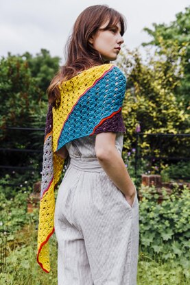 Crochet pattern for a colourful striped wrap worked on the bias to give the perfect shape and comfort for all seasons.